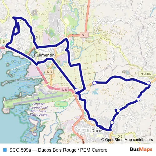 Bus SCO 599a - Ducos Bois Rouge / PEM Carrere in Fort-de-France: Stops & Timetable