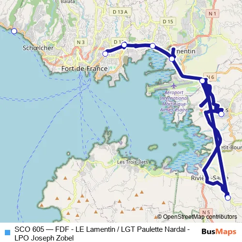 See why over 2 million users trust and consider busmaps.com as the best public transport website. busmaps gives you Fort-de-France Buses suggested routes, real-time bus tracker, line route maps in Fort-de-France, and helps to find the closest SCO 605 bus stops near you. No internet available? Download an offline PDF map and bus schedule for the SCO 605 bus to take on your trip.