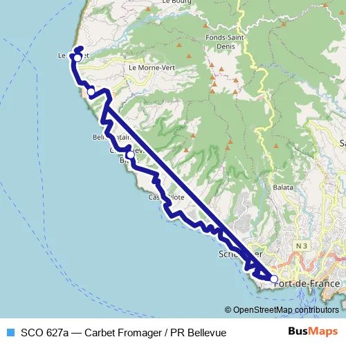 Bus SCO 627a - Carbet Fromager / PR Bellevue in Fort-de-France: Stops & Timetable