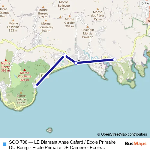 Click here to view the nearest SCO 708 - LE Diamant Anse Cafard / Ecole Primaire DU Bourg - Ecole Primaire DE Carriere - Ecole Maternelle O'Mullane bus stop.