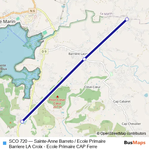 The first stop of the SCO 720 bus route is Sainte Anne - Primaire Cap Ferre and the last stop is Sainte Anne - Barreto. SCO 720 (Sainte-Anne Barreto / Ecole Primaire Barriere LA Croix - Ecole Primaire CAP Ferre) is operational during everyday.