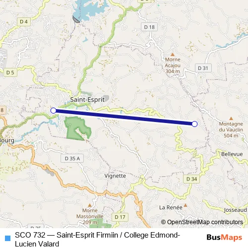 The first stop of the SCO 732 bus route is Saint Esprit - Firmin and the last stop is Saint-Esprit - College E. Lucien Valard. SCO 732 (Saint-Esprit Firmiin / College Edmond-Lucien Valard) is operational during on weekdays.