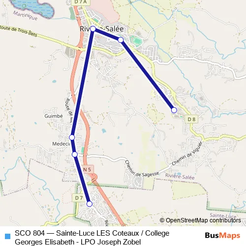 The first stop of the SCO 804 bus route is Sainte Luce - Cite Les Coteaux and the last stop is Riviere Salee - Lycee Thoraille J.Zobel. SCO 804 (Sainte-Luce LES Coteaux / College Georges Elisabeth - LPO Joseph Zobel) is operational during everyday.