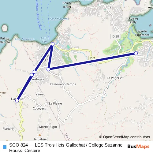 Click here to view the nearest SCO 824 - LES Trois-Ilets Gallochat / College Suzanne Roussi Cesaire bus stop.