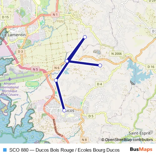 Bus SCO 880 - Ducos Bois Rouge / Ecoles Bourg Ducos: Full Schedule in Fort-de-France
