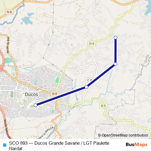 Bus SCO 893 - Ducos Grande Savane / LGT Paulette Nardal in Fort-de-France: Stops & Timetable