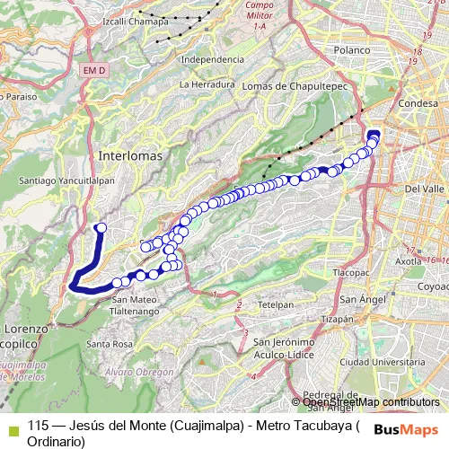 Click here to view the nearest 115 - Jesús del Monte (Cuajimalpa) - Metro Tacubaya (Ordinario) bus stop.