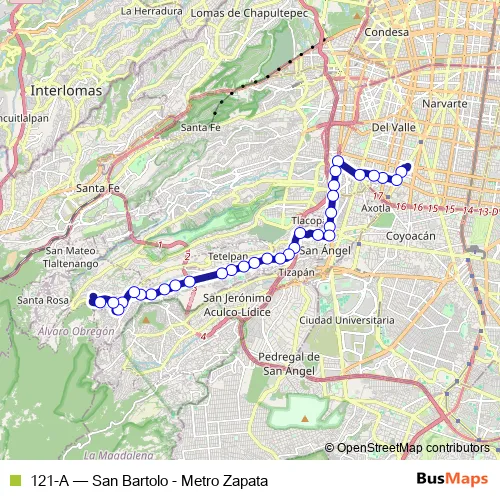 Bus 121-A - San Bartolo - Metro Zapata: Full Schedule in Mexico City