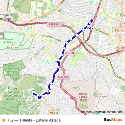 132 (Tlalmille - Estadio Azteca) Bus in Mexico City