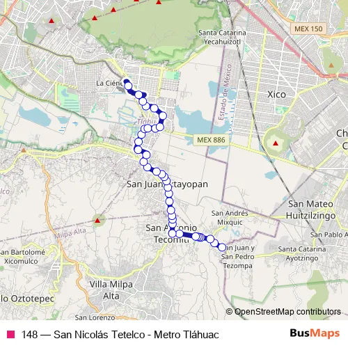 Bus 148 - San Nicolás Tetelco - Metro Tláhuac in Xico: Stops & Timetable