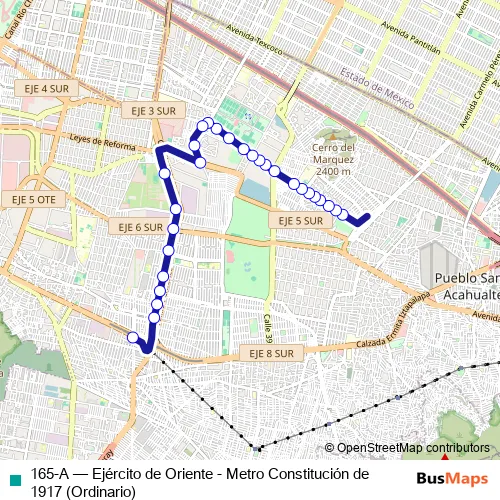 Bus 165-A - Ejército de Oriente - Metro Constitución de 1917 (Ordinario): Full Schedule in Mexico City
