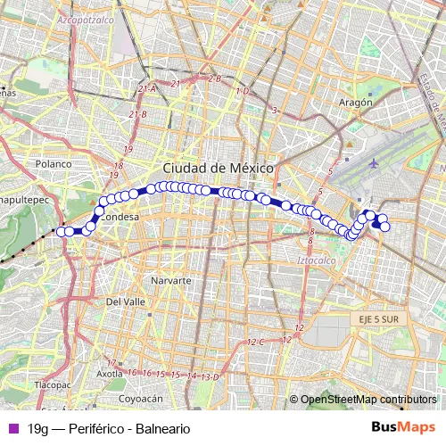See why over 2 million users trust and consider busmaps.com as the best public transport website. busmaps gives you Mexico City Buses suggested routes, real-time bus tracker, line route maps in Mexico City, and helps to find the closest 19g bus stops near you. No internet available? Download an offline PDF map and bus schedule for the 19g bus to take on your trip.