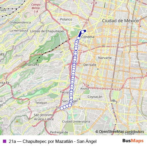 Bus 21a - Chapultepec por Mazatlán - San Ángel Schedule in Mexico City