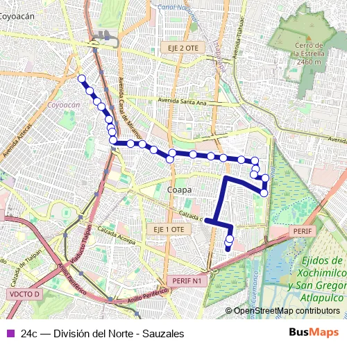 Bus 24c - División del Norte - Sauzales: Full Schedule in Mexico City
