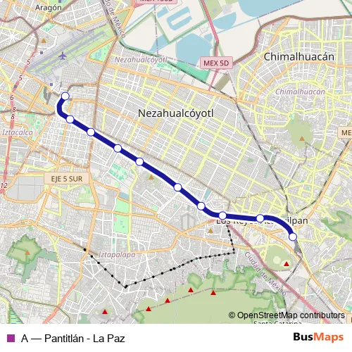 See why over 2 million users trust and consider busmaps.com as the best public transport website. busmaps gives you Mexico City Metro Lines suggested routes, real-time bus tracker, line route maps in Mexico City, and helps to find the closest A metro stops near you. No internet available? Download an offline PDF map and bus schedule for the A metro to take on your trip.