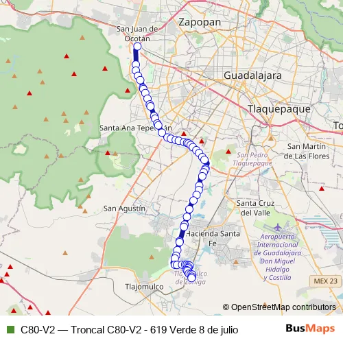 Bus C80-V2 - Troncal C80-V2 - 619 Verde 8 de julio: Full Schedule in Guadalajara