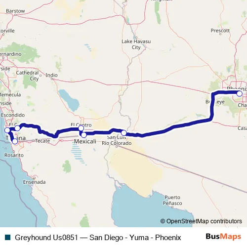 Outbound: Phoenix Bus Station – San Ysidro Bus Terminal