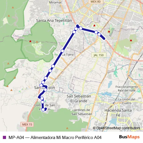 See why over 2 million users trust and consider busmaps.com as the best public transport website. busmaps gives you Guadalajara Buses suggested routes, real-time bus tracker, line route maps in Guadalajara, and helps to find the closest MP-A04 bus stops near you. No internet available? Download an offline PDF map and bus schedule for the MP-A04 bus to take on your trip.