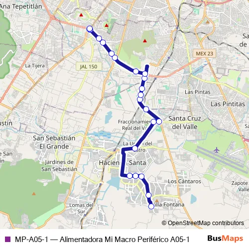 Prolongación Colón - Lateral de Periférico Sur - Calle Comonfort - Lateral Periférico Sur - Lateral de Periférico Sur - Lateral Periférico Sur - Avenida Adolf B. Horn Jr. - Avenida Concepción - Boulevard de las Américas - Boulevard Colón - Boulevard Brasil - Boulevard Chulavista - Calle Cerro de la Cruz del Marqués - Calle Cerro de Alcalá