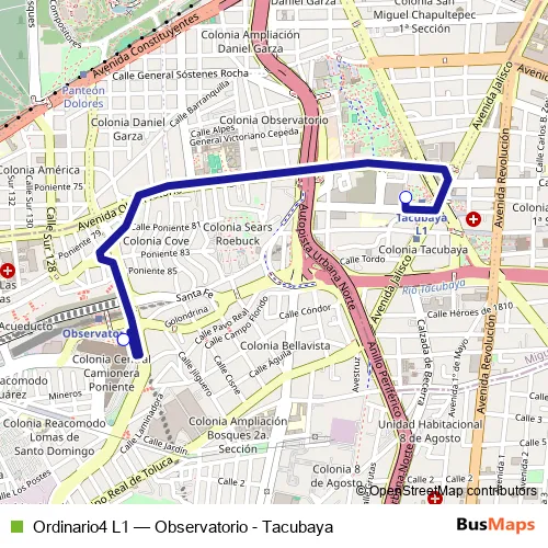Bus Ordinario4 L1 - Observatorio - Tacubaya: Full Schedule in Mexico City