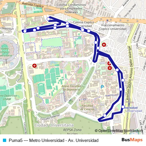 See why over 2 million users trust and consider busmaps.com as the best public transport website. busmaps gives you Mexico City Buses suggested routes, real-time bus tracker, line route maps in Mexico City, and helps to find the closest Puma5 bus stops near you. No internet available? Download an offline PDF map and bus schedule for the Puma5 bus to take on your trip.