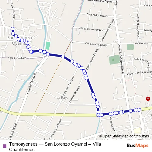 Click here to view the nearest Temoayenses - San Lorenzo Oyamel → Villa Cuauhtémoc bus stop.