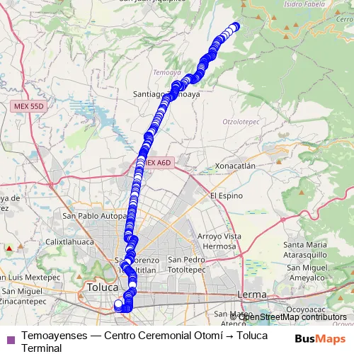 Bus Temoayenses - Centro Ceremonial Otomí → Toluca Terminal: Full Schedule in Toluca