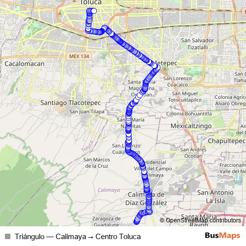 Bus Triángulo - Calimaya → Centro Toluca in Calimaya: Stops & Timetable
