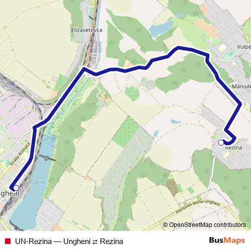 The first stop of the UN-Rezina bus route is sat. Rezina, Terminus and the last stop is Autogara Ungheni, str. Feroviară. UN-Rezina (Ungheni ⇄ Rezina) is operational during everyday.