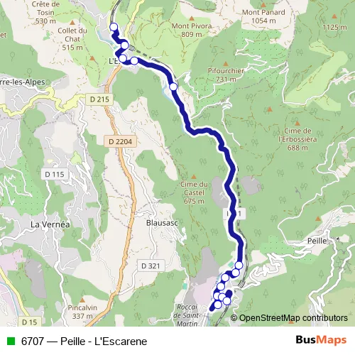 Click here to view the nearest 6707 - Peille - L'Escarene bus stop.