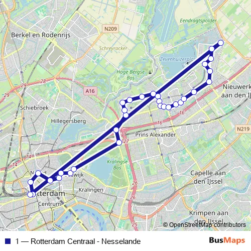 Bus 1 - Rotterdam Centraal - Nesselande: Full Schedule in Nieuwerkerk aan den IJssel