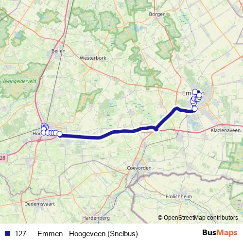 Click here to view the nearest 127 - Emmen - Hoogeveen (Snelbus) bus stop.