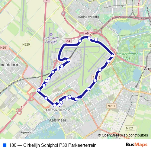 180 (Cirkellijn Schiphol P30 Parkeerterrein) Bus in Amsterdam