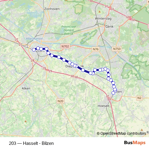 Click here to view the nearest 203 - Hasselt - Bilzen bus stop.