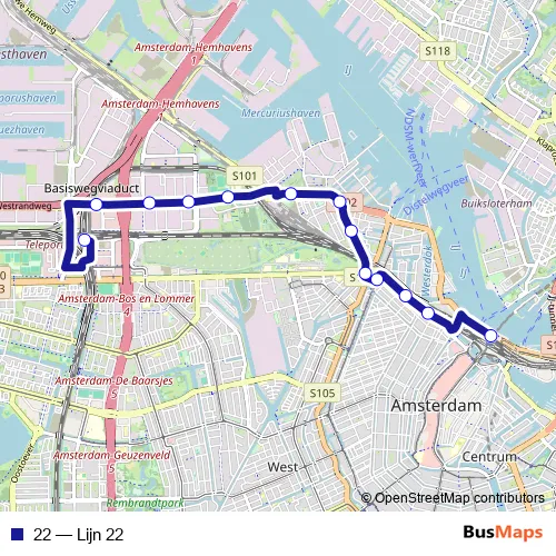 See why over 2 million users trust and consider busmaps.com as the best public transport website. busmaps gives you Amsterdam Buses suggested routes, real-time bus tracker, line route maps in Amsterdam, and helps to find the closest 22 bus stops near you. No internet available? Download an offline PDF map and bus schedule for the 22 bus to take on your trip.