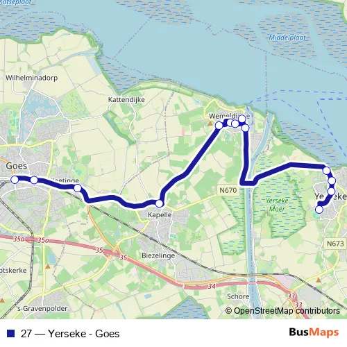 Bus 27 - Yerseke - Goes in Wemeldinge: Stops & Timetable