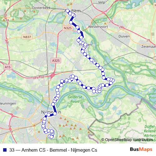 See why over 2 million users trust and consider busmaps.com as the best public transport website. busmaps gives you Arnhem Buses suggested routes, real-time bus tracker, line route maps in Arnhem, and helps to find the closest 33 bus stops near you. No internet available? Download an offline PDF map and bus schedule for the 33 bus to take on your trip.