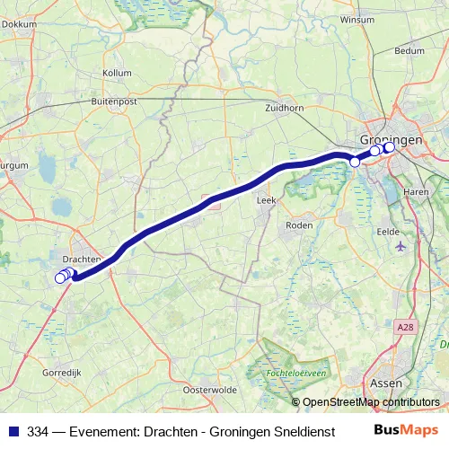 Click here to view the nearest 334 - Evenement: Drachten - Groningen Sneldienst bus stop.