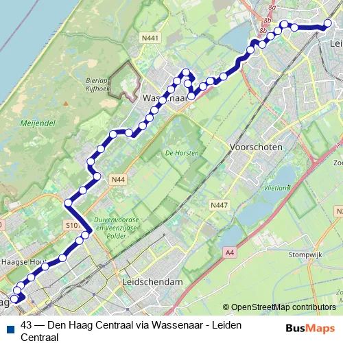 Bus 43 - Den Haag Centraal via Wassenaar - Leiden Centraal: Full Schedule in Wassenaar