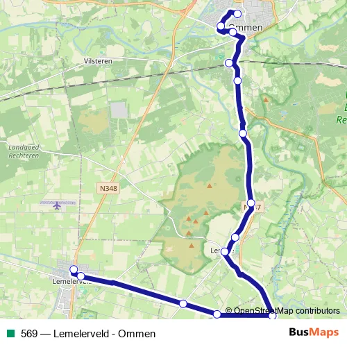 The first stop of the 569 bus route is Lemelerveld, Evenemententerrein and the last stop is Ommen, Chevalleraustraat. 569 (Lemelerveld - Ommen) is operational during on weekdays.