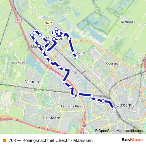 Utrecht, Oud-Zuilen. 708 (Koningsnachtnet Utrecht - Maarssen) is operational during everyday.