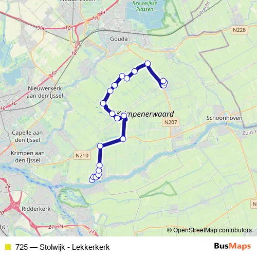 Bus 725 - Stolwijk - Lekkerkerk: Full Schedule in Berkenwoude
