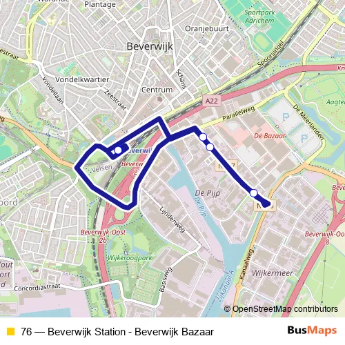 Click here to view the nearest 76 - Beverwijk Station - Beverwijk Bazaar bus stop.