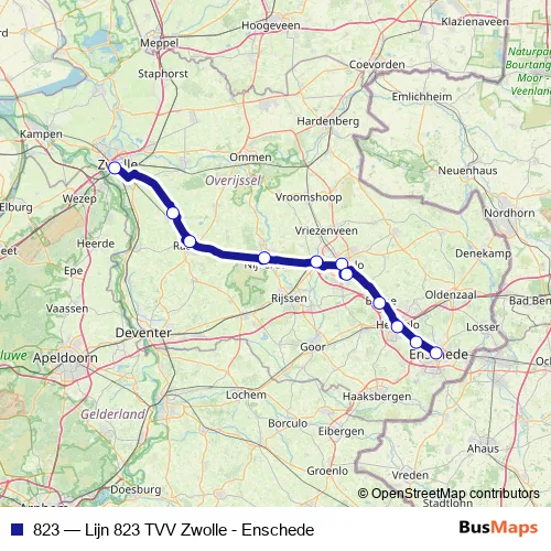 Click here to view the nearest 823 - Lijn 823 TVV Zwolle - Enschede bus stop.
