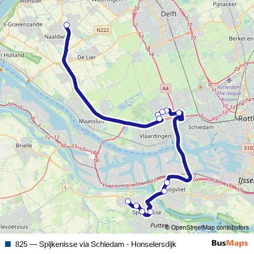 Bus 825 - Spijkenisse via Schiedam - Honselersdijk in Spijkenisse: Stops & Timetable