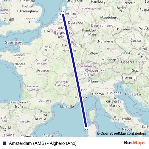 See why over 2 million users trust and consider busmaps.com as the best public transport website. busmaps gives you Amsterdam Flights suggested routes, real-time bus tracker, line route maps in Amsterdam, and helps to find the closest Amsterdam (AMS) - Alghero (Aho) air stops near you. No internet available? Download an offline PDF map and bus schedule for the Amsterdam (AMS) - Alghero (Aho) air to take on your trip.