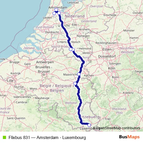 Click here to view the nearest Flixbus 831 - Amsterdam - Luxembourg bus stop.