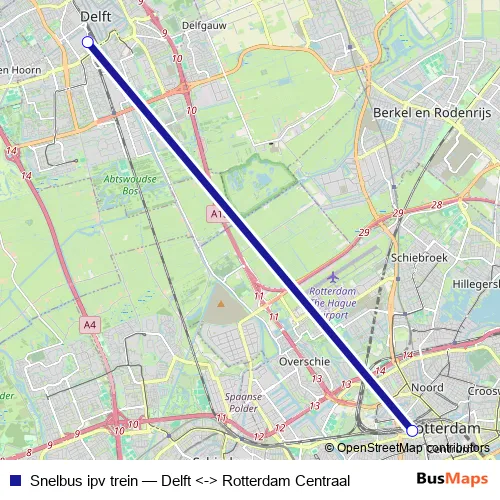 Ns Snelbus ipv trein Delft <-> Rotterdam Centraal Bus