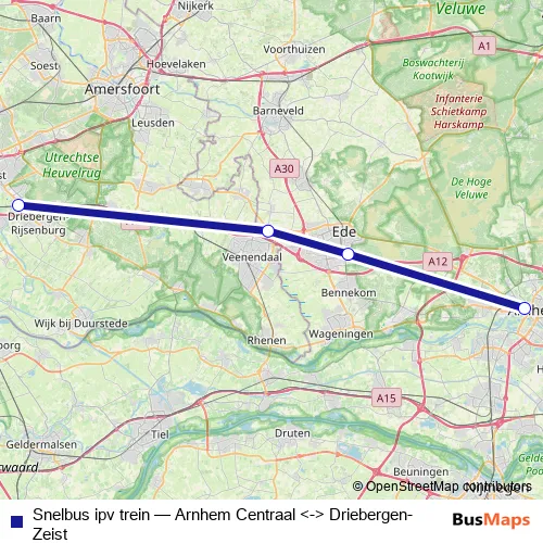 Click here to view the nearest Snelbus ipv trein - Arnhem Centraal <-> Driebergen-Zeist bus stop.