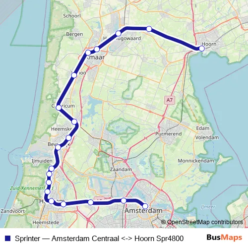 Click here to view the nearest Sprinter - Amsterdam Centraal <-> Hoorn Spr4800 rail stop.